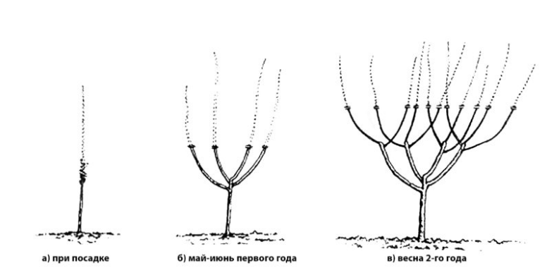 Саженец обрезают очень низко — на высоте 30–50 см от земли.