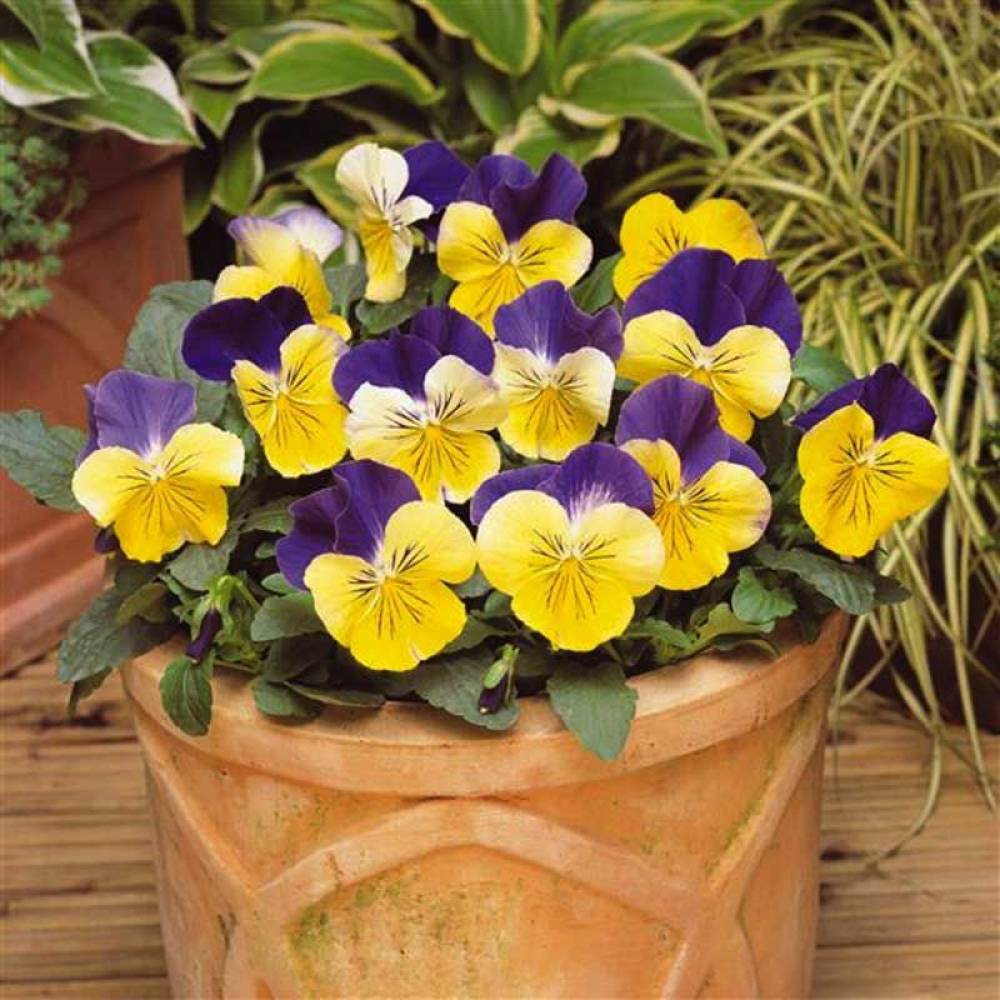 Неприхотливый двулетник, с яркими крупными цветками. Виола очень отзывчива на полив, цветет все лето множеством цветов на длинных ножках. Отлично смотрится в рядовых посадках вдоль бордюров или в балконных кашпо.