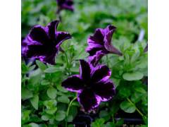 Цветы фиолетовые с контрастной сиреневой или светло-лиловой каймой по краю лепестков. Окраска гарантированно создает эффектную экспозицию. Идеально подходит для выращивания в подвесных кашпо, контейнерах, балконных ящиках, а также в цветниках в качестве бордюрного или почвопокровного растения. Отличается великолепным естественным ветвлением, формируя пышные, плотные "шапки", усыпанные множеством цветков. Растение не требует прищипки для ветвления.